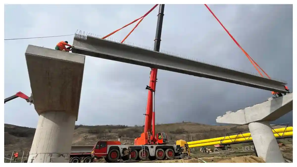 Primele grinzi montate la viaductul Petrisat pe centura Blaj
