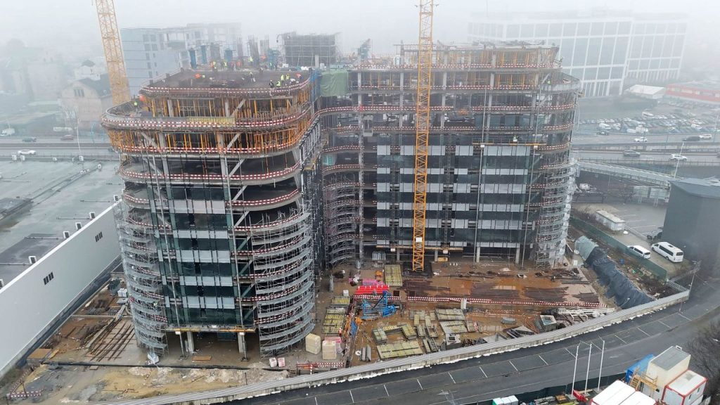 Cele mai recente imagini din teren arata progrese semnificative la nivelul planseelor si al nucleelor structurale. In aceasta etapa sunt executate lucrari ample de beton armat, inclusiv turnarea planseelor, precum si realizarea stalpilor si a peretilor structurali care vor sustine intreaga cladire.