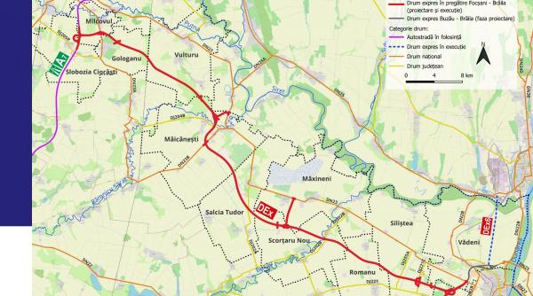 Ordinul de incepere pentru proiectul DEx Focsani – Braila a fost emis pe 14 noiembrie 2025, cu 2 decembrie stabilita drept data pentru startul proiectarii. Drumul expres, cu o lungime de 73,5 kilometri, va asigura legatura dintre Autostrada Moldovei A7, podul peste Dunare de la Braila, Drumul Expres Braila–Galati, dar si rutele spre Tulcea si Constanta, potrivit CNIR.